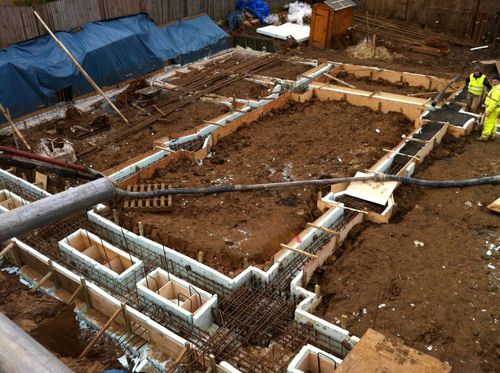 The ground was poor and an old tree had resulted in desiccation of the soil. To prevent subsidence the new building was designed on site on piles that placed the loads deep into the ground.